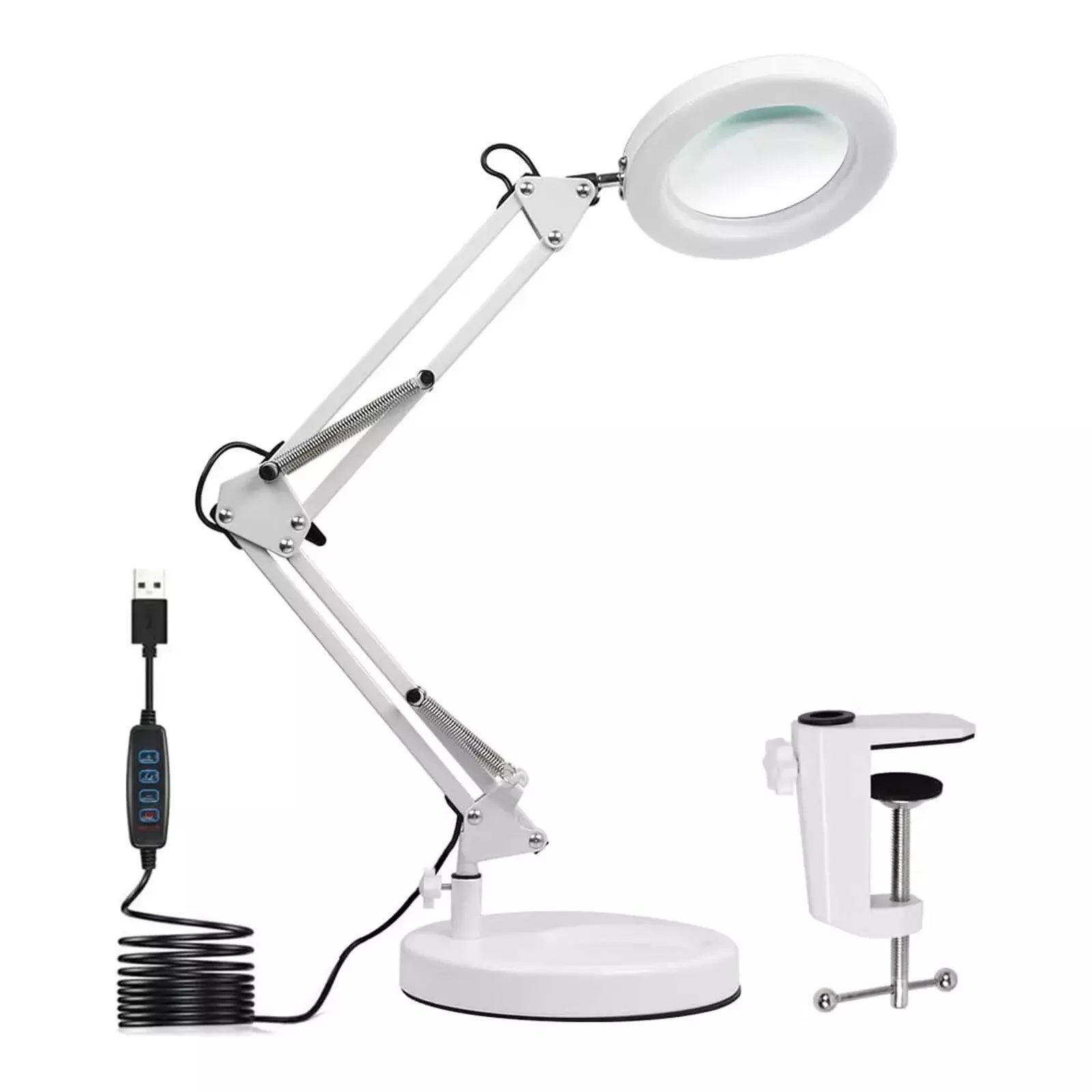 Hands Free Magnifying Tools - This magnifier lamp comes with two swing arm, there has 3 knobs 4 springs, through adjusts the knobs, you can fix the glass lens where you need it, free your hands so you enjoy arts hobbies such as cross stitch, knitting, beading, painting, miniatures, etc.